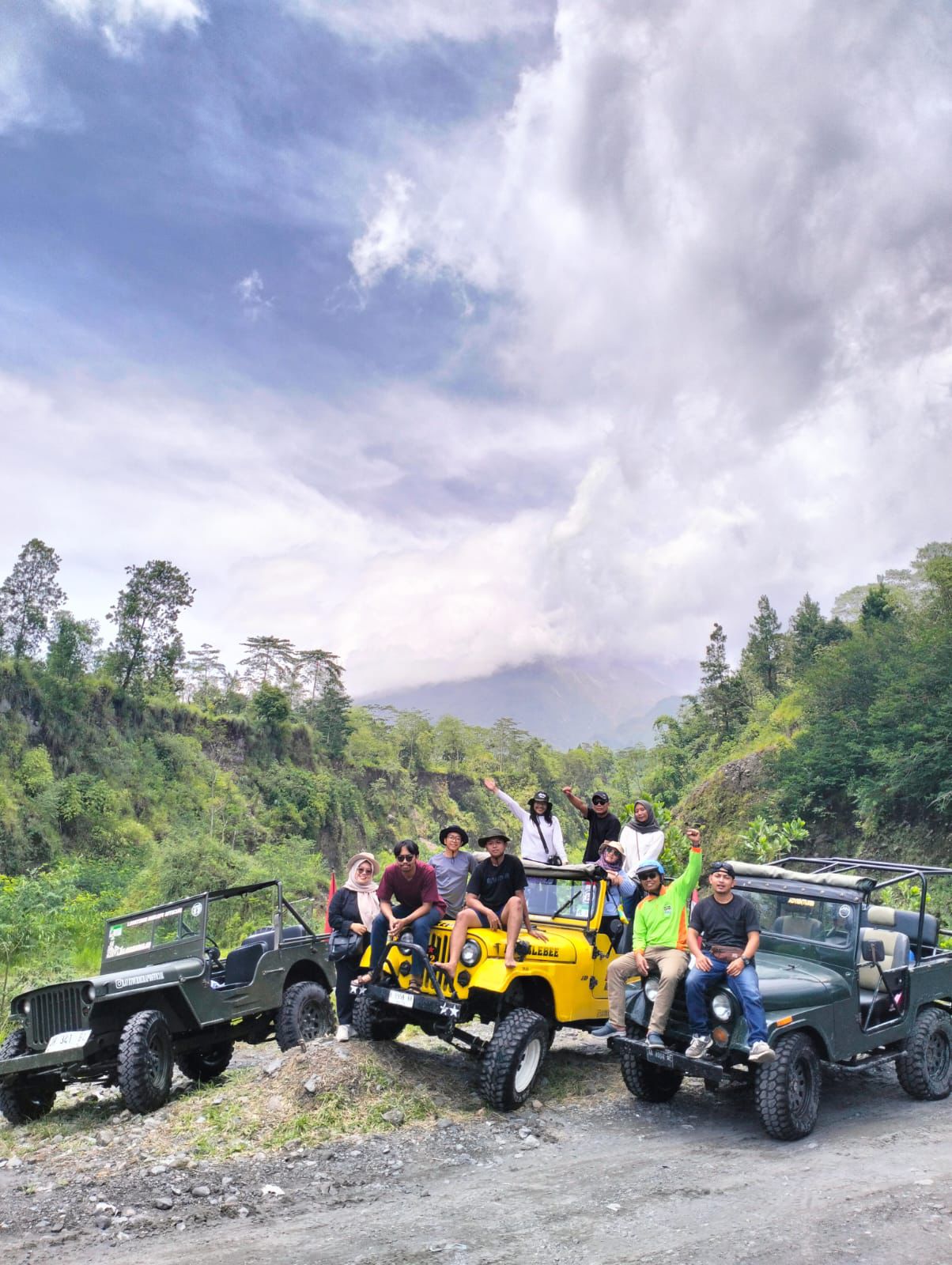 Petualangan jeep off-road terbaik menyusuri jejak erupsi Gunung Merapi.